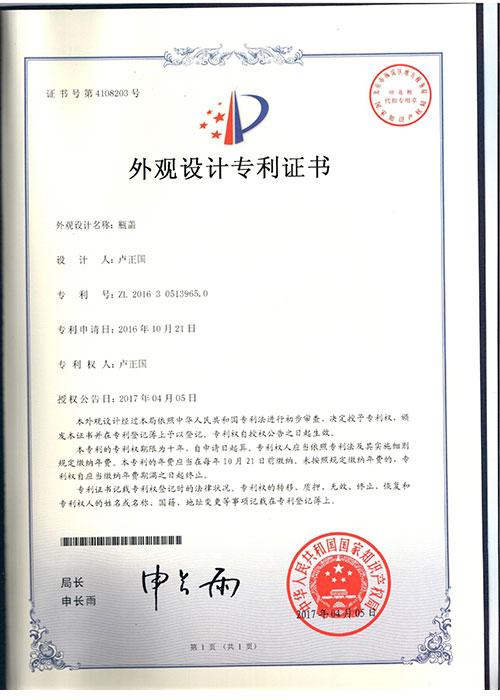 • 產品外觀專利證書